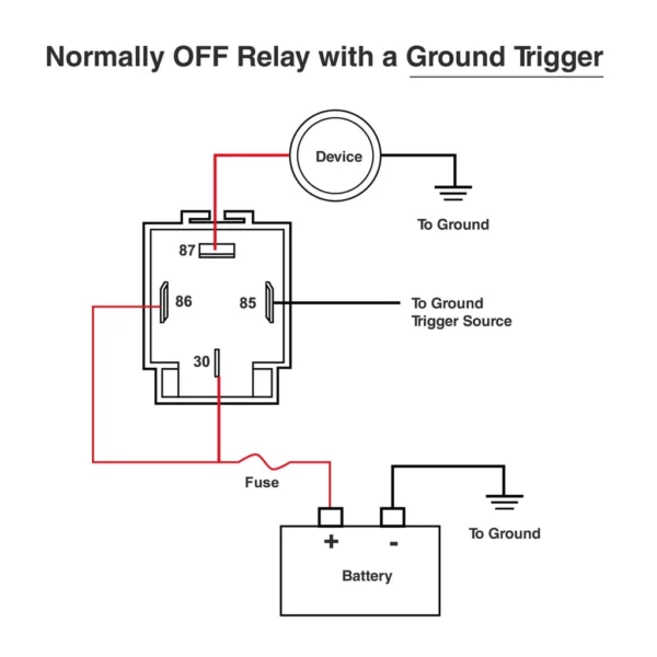 - Easy Wiring – The relay sockets come with color-labeled wires for loads/accessories and convenient wiring. Black – Ground (85), Red – VDC (30), White – Trigger (86), Blue – Output N/O (87)
