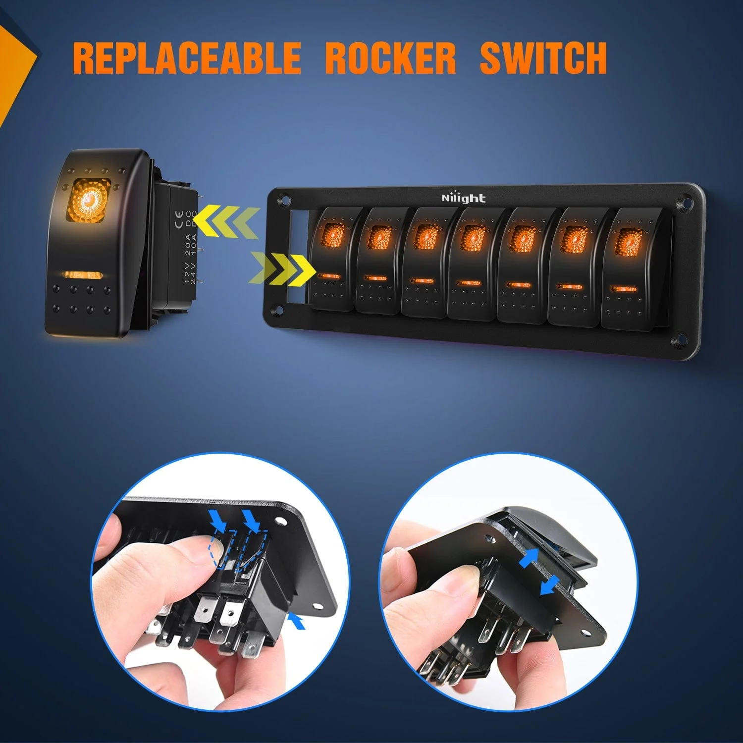 - Waterproof Switches & Aluminum Panel: The item is made of waterproof switches and aluminum panel, which is sturdier and more durable than plastic panel. The item has a unique technology in the waterproof structure. The ultra-thin silicone film prevents water from entering the inside of the switch panel, ensuring the inner cavity is dry, avoiding short circuits, and making the boat rocker switches safer during use.